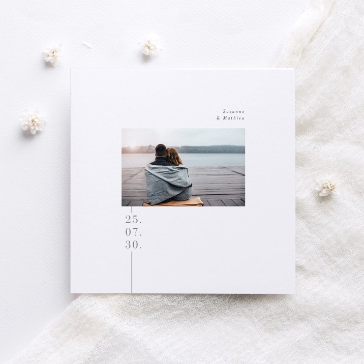 Ce faire-part se présente sous la forme d'une carte double-volet, à personnaliser avec les détails de votre mariage.