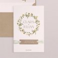 Avec sa délicate couronne de fleurs aux tons ensoleillés, le faire-part de mariage Adriana annonce un beau jour d’été à ne pas manquer.
