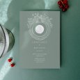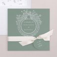L'incontournable thème floral est revisité avec élégance sur le faire-part de mariage Gien. Une couronne de fleurs délicatement tracée s'inscrit au cœur d'un décor vert de gris, dévoilant déjà à vos invités un thème chic ou champêtre.