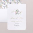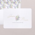 Un délicat bouquet de fleurs aquarellé vient sublimer le faire-part de mariage My sweet bouquet. Les initiales et les prénoms des mariés s’esquissent en lettres dorées sur cette création poétique, parfaite pour annoncer un mariage champêtre chic.