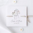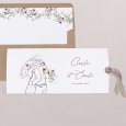 Un couple enlacé, quelques notes fleuries et colorées : le faire-part de mariage Bohemian dream esquisse, avec une délicate poésie, votre beau jour à venir.