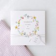 De délicates fleurs sauvages colorées s'esquissent autour de votre annonce sur le faire-part de mariage Farandole. Une création poétique, parfaite pour une union célébrée au printemps ou en été.