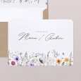 De jolis brins de fleurs sauvages s'esquissent sur le faire-part de mariage Wildery. Cette composition empreinte de poésie, sublimée d’une élégante typographie, sera parfaite pour célébrer un mariage au thème bohème.