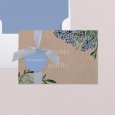Ce faire-part de mariage se présente sous la forme d’une carte paysage pliée en trois volets, accompagné de son étiquette personnalisée. À l’ouverture, vos proches découvriront les détails de votre beau jour.