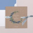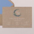 Arche fleurie aux tons bleutés, prénoms habillés d’une typographie raffinée, papier d’aspect kraft : le faire-part de mariage Azzura annonce une célébration à la campagne à ne pas manquer.