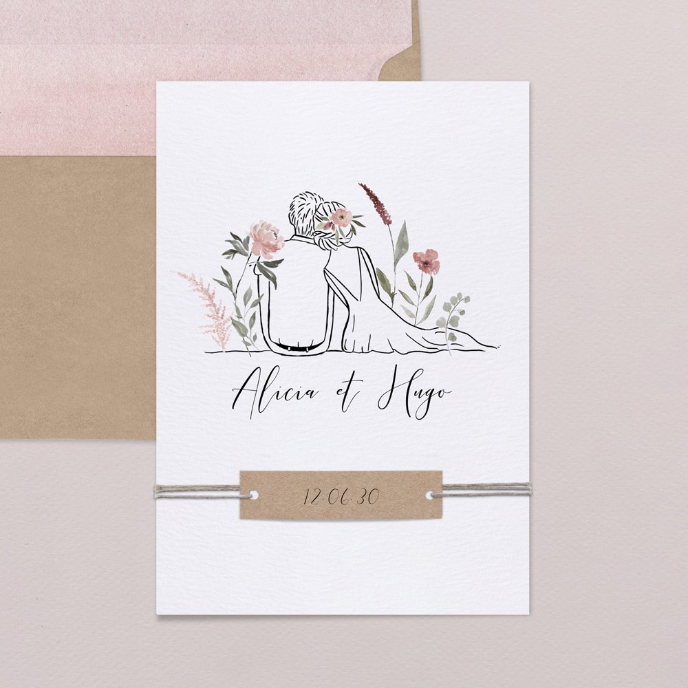 Il comprend un faire part, un marque-page et 2 petites cartes à personnaliser selon votre convenance (programme, liste d'hôtels, plan, invitation au brunch du lendemain, ...)