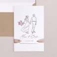Les fiancés s'esquissent avec tendresse, main dans la main, sur le faire-part de mariage Ritournelle. Une création délicate, pleine de poésie et agrémentée d'une note fleurie, parfaite pour annoncer un mariage bohème, nature, simple et élégant.