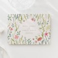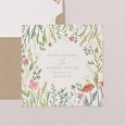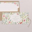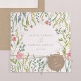 Sur le faire-part de mariage Calixte, fleurs et feuillages colorés viennent entourer votre heureuse annonce. Une création empreinte de fraîcheur et de poésie, parfaite pour raconter un mariage au thème champêtre ou bohème en pleine saison estivale.