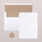 Sobriété et élégance sont les maîtres mots du faire-part de mariage Allegria... Vos convives seront séduits par la simplicité de vos deux prénoms joliment calligraphiés et sublimés par la finition cuivre.