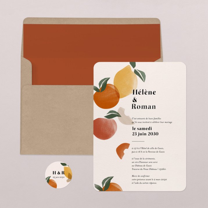 Succombez à la simplicité du faire-part de mariage Summer, les couleurs vives de ses fruits raviront vos convives !