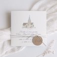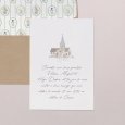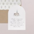 Le lieu de votre plus beau “oui” s’illustre en aquarelle sur le faire-part de mariage Faith. Un tableau sublimé d’une élégante annonce calligraphiée et d’un ruban rosé : parfait pour conter le début de ce nouveau chapitre ensemble.