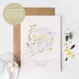 Avec ses délicates esquisses crayonnées, le faire-part de mariage Fontainebleau présage de chaleureuses festivités. Une création un brin bucolique aux tons printaniers, parfaite pour annoncer un mariage à ne pas manquer.