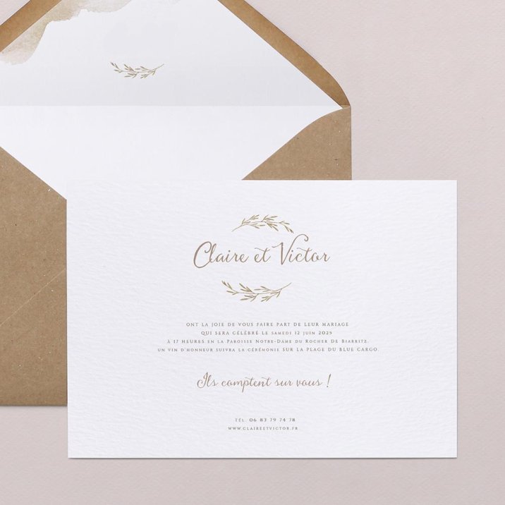 Ce faire-part se présente sous la forme d’une carte paysage grand format. Elle se personnalise au recto avec les détails de votre beau jour.
