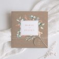 Authenticité et modernité se rencontrent sur le faire-part Symphonia. Ses délicates feuilles d’eucalyptus esquissées façon aquarelle, son papier d'aspect kraft et sa typographie sublimée de finitions cuivrées créent une élégante symphonie pour annoncer le plus beau jour de votre vie.