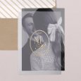 Ce faire-part se compose d'une carte recto-verso, glissée dans un voile en papier transparent. Le tout se personnalise avec les détails de votre beau jour.