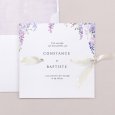 Sur le faire-part de mariage Wysteria, de superbes glycines violettes s’esquissent en aquarelle autour de votre heureuse annonce. Une composition florale pleine de poésie, parfaite pour annoncer un mariage estival.