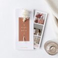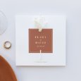 Sur le faire-part de mariage Paola, calligraphie dorée et délicates fleurs séchées s’associent, en toute élégance, avec la teinte terracotta. Une invitation contemporaine qui fera impression auprès de vos invités.