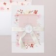 Ce modèle comprend 3 éléments : un faire-part, une carte glissée dans sa pochette interne et une étiquette à attacher sur le devant. Des perforations sont prévues sur le faire-part pour y glisser un joli ruban (au choix et en supplément), agrémenté de l'étiquette.