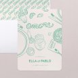 Agrumes, bougies et autres décorations qui viendront sublimer vos tables s’illustrent sur le faire-part de mariage Amore Mio. Votre amour s’inscrit en lettres manuscrites sur cette création aux doux tons de Méditerranée, idéale pour annoncer un mariage d’été.