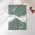 À la fois minimaliste et chic, le faire-part de mariage Canterbury dévoile les initiales des futurs mariés, joliment calligraphiées. Une création aux doux tons verts, idéale pour célébrer un mariage élégant.