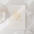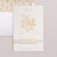 Empreint d'un romantisme intemporel, le faire-part de mariage Richelieu dévoile un délicat bouquet de fleurs déposé dans un vase ancien. Une création inspirée où vos prénoms s'inscrivent sublimés d'or, parfaite pour convier à une réception chic.