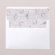 Ce modèle comprend 3 éléments : un faire-part, une carte glissée dans sa pochette interne et une étiquette à attacher sur le devant. Des perforations sont prévues sur le faire-part pour y glisser un joli ruban (au choix et en supplément), agrémenté de l'étiquette.