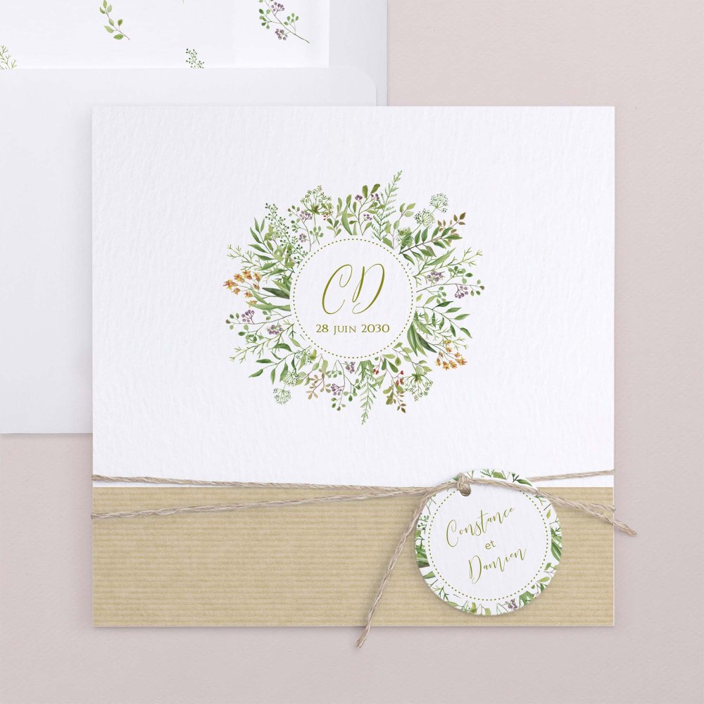 Ce modèle comprend un faire-part et une carte invitation, qui se glisse à l'intérieur du faire-part. Des perforations sont prévues pour y glisser un joli ruban (au choix et en supplément) agrémenté de l'étiquette, le détail qui fait la différence.