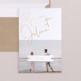 Vos prénoms sont au centre de l’attention sur le faire-part Pure Gold. Élégante calligraphie ennoblie de finitions dorées, photographie des futurs mariés : ce modèle imaginé en ode à votre amour annoncera tendrement votre beau jour.
