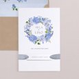 L'incontournable thème floral est revisité avec modernité sur le faire-part de mariage Hortense. Une superbe couronne de fleurs aux tons bleus s'esquisse sur cette création, parfaite pour donner le ton d'un mariage champêtre chic coloré.