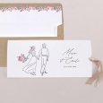 Les fiancés s'esquissent avec tendresse, main dans la main, sur le faire-part de mariage Ritournelle. Une création délicate, pleine de poésie et agrémentée d'une note fleurie, parfaite pour annoncer un mariage bohème, nature, simple et élégant.
