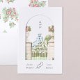 Caractérisé par sa découpe en forme d'alcôve sur la couverture, ce faire-part double volet comprend une carte glissée à l'intérieur.L'ensemble est personnalisable avec les détails de votre évènement.