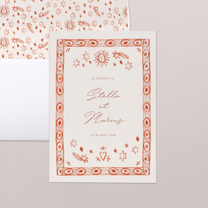 Ce faire-part se présente sous la forme d'une carte recto-verso à bords droits, personnalisable avec les détails de votre mariage.
