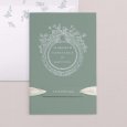 L'incontournable thème floral est revisité avec élégance sur le faire-part de mariage Gien. Une couronne de fleurs délicatement tracée s'inscrit au cœur d'un décor vert de gris, dévoilant déjà à vos invités un thème chic ou champêtre.