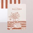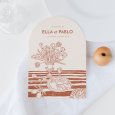 La douce poésie de la côte amalfitaine s’invite sur le faire-part de mariage Sorrente. Une jolie table aux airs de Méditerranée s’esquisse en tons terracotta sur cette papeterie, la promesse d'une célébration ensoleillée à l'esprit résolument dolce vita.