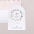 En forme d'alcôve, ce faire-part se personnalise au recto et au verso avec tous les détails de votre mariage.