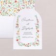 En forme d'alcôve, ce faire-part se personnalise au recto et au verso avec tous les détails de votre mariage.