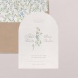 En forme d'alcôve, ce faire-part se personnalise au recto et au verso avec tous les détails de votre mariage.