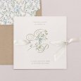 Minimaliste et intemporel, le faire-part de mariage Danaé met en lumière vos prénoms, calligraphiés autour d'une délicate illustration végétale.