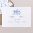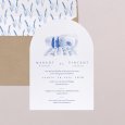 Ce faire-part se présente sous la forme d'une carte au format portrait, composée d'un volet central et de deux volets latéraux mobiles. À leur ouverture, ces derniers dévoilent les détails clés de votre beau jour. Ils peuvent être maintenus fermés grâce à un joli ruban (au choix et en supplément).