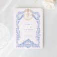 Sublimé d'illustrations et de décors opulents dignes de l'époque de la Régence, le faire-part de mariage Vienna annonce, avec élégance, l'évènement à venir. Fleurs, feuillages, médaillon doré et initiales calligraphiées scellent cette création de papier, à l'esthétique résolument Bridgerton.