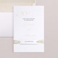 Ce faire-part se présente sous la forme d'une carte au format portrait, composée d'un volet central et de deux volets latéraux mobiles. À leur ouverture, ces derniers dévoilent les détails clés de votre beau jour. Ils peuvent être maintenus fermés grâce à un joli ruban (au choix et en supplément).