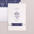 Ce faire-part se présente sous la forme d'une carte au format portrait, composée d'un volet central et de deux volets latéraux mobiles. À leur ouverture, ces derniers dévoilent les détails clés de votre beau jour. Ils peuvent être maintenus fermés grâce à un joli ruban (au choix et en supplément).