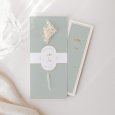 Délicatement sublimé de finitions dorées, le faire-part de mariage Eugénie et sa douce nuance de vert céladon saura enchanter vos invités, dès l'ouverture de leur courrier. Une création parfaite pour annoncer une cérémonie chic.