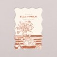 Caractérisé par ses bords en forme de vagues, ce faire-part de mariage au format portrait se personnalise au recto et au verso avec les détails de votre beau jour.