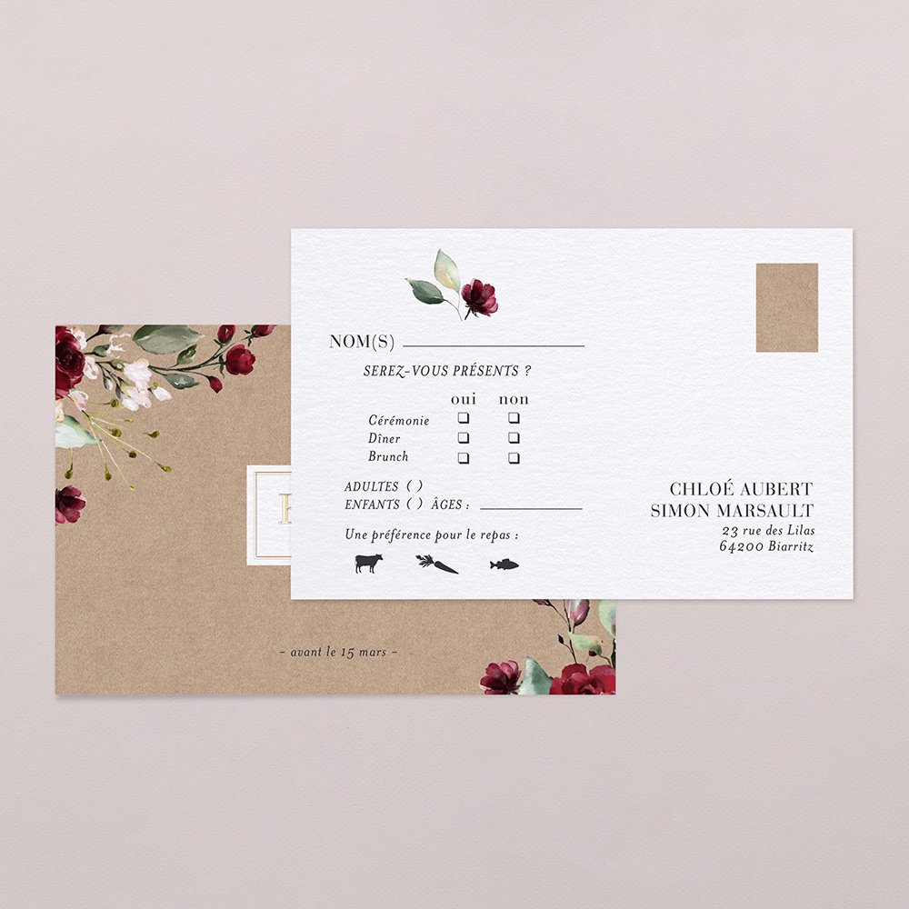 Glissez simplement ces cartes réponse dans l'enveloppe avec vos faire-part. Conçues comme de véritables cartes postales avec un espace pour le timbre et votre adresse postale d'ores et déjà renseignée, vos invités n'auront plus qu'à indiquer leur réponse avant de vous la retourner.