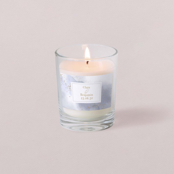 Faites briller le souvenir de votre union chez vos invités, grâce à cette petite bougie personnalisée.