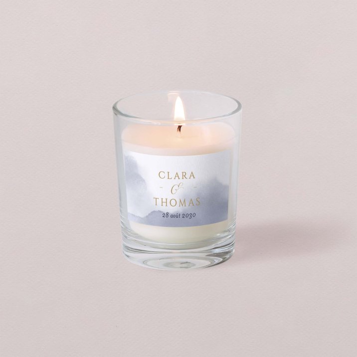 Faites briller le souvenir de votre union chez vos invités, grâce à cette petite bougie personnalisée.