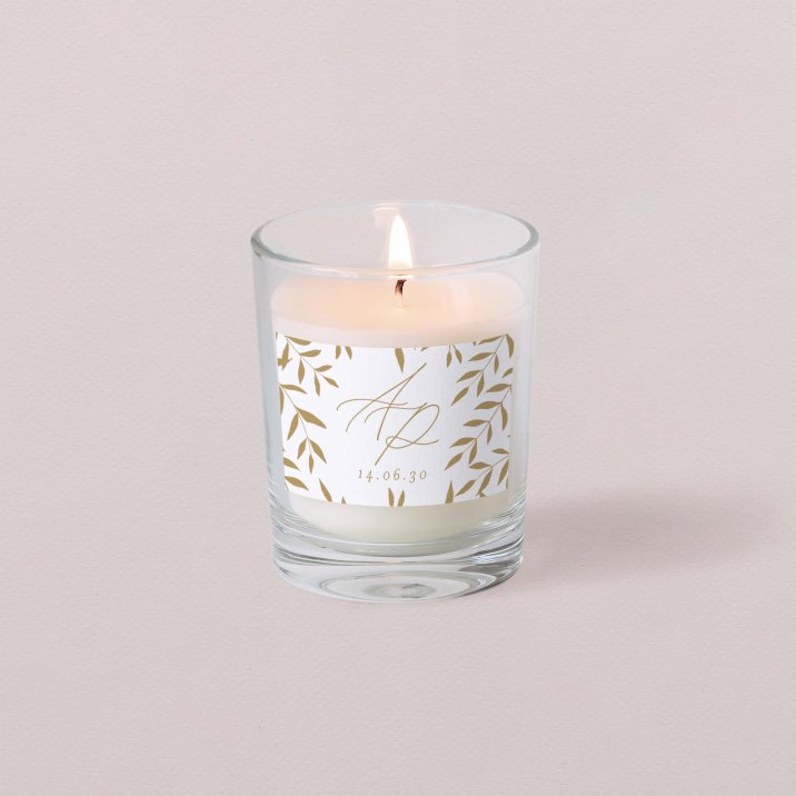 Faites briller le souvenir de votre union chez vos invités, grâce à cette petite bougie personnalisée.