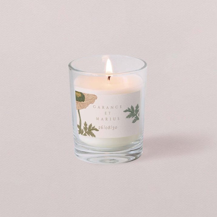 Faites briller le souvenir de votre union chez vos invités, grâce à cette petite bougie personnalisée.