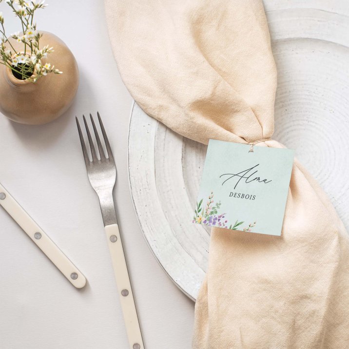 Astucieux et décoratifs ! Attachez-les autour de votre menu à l’aide d’un cordon en jute et glissez le tout dans une jolie serviette, pour que chacun de vos invités trouve sa place.